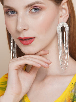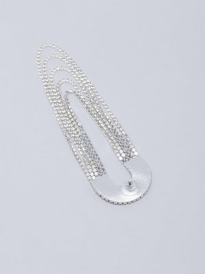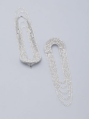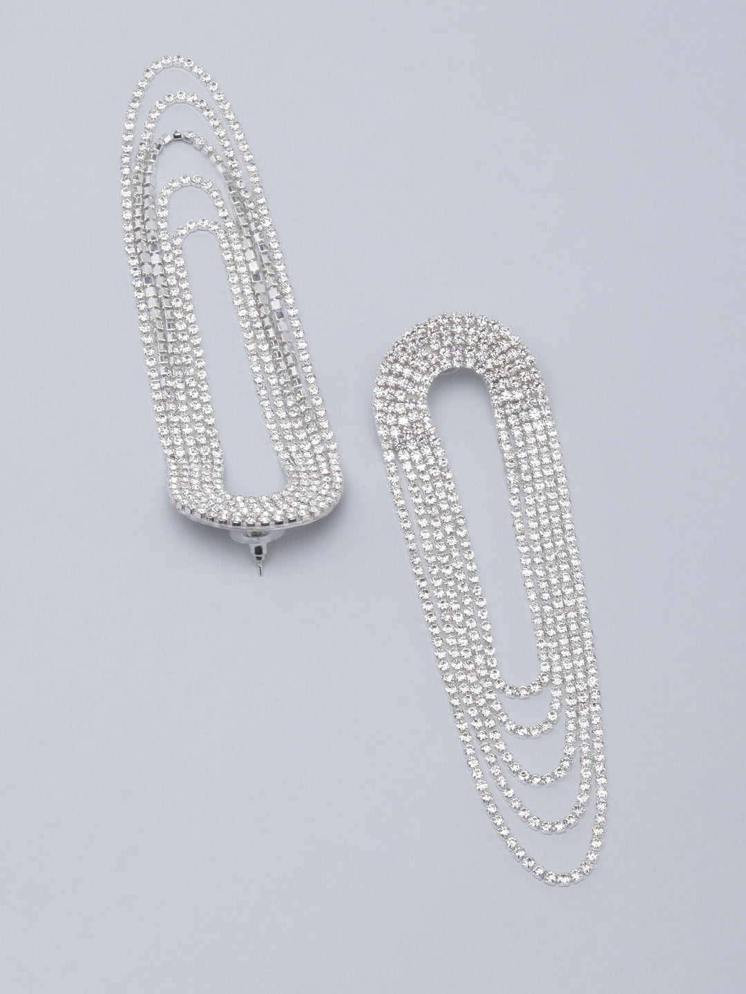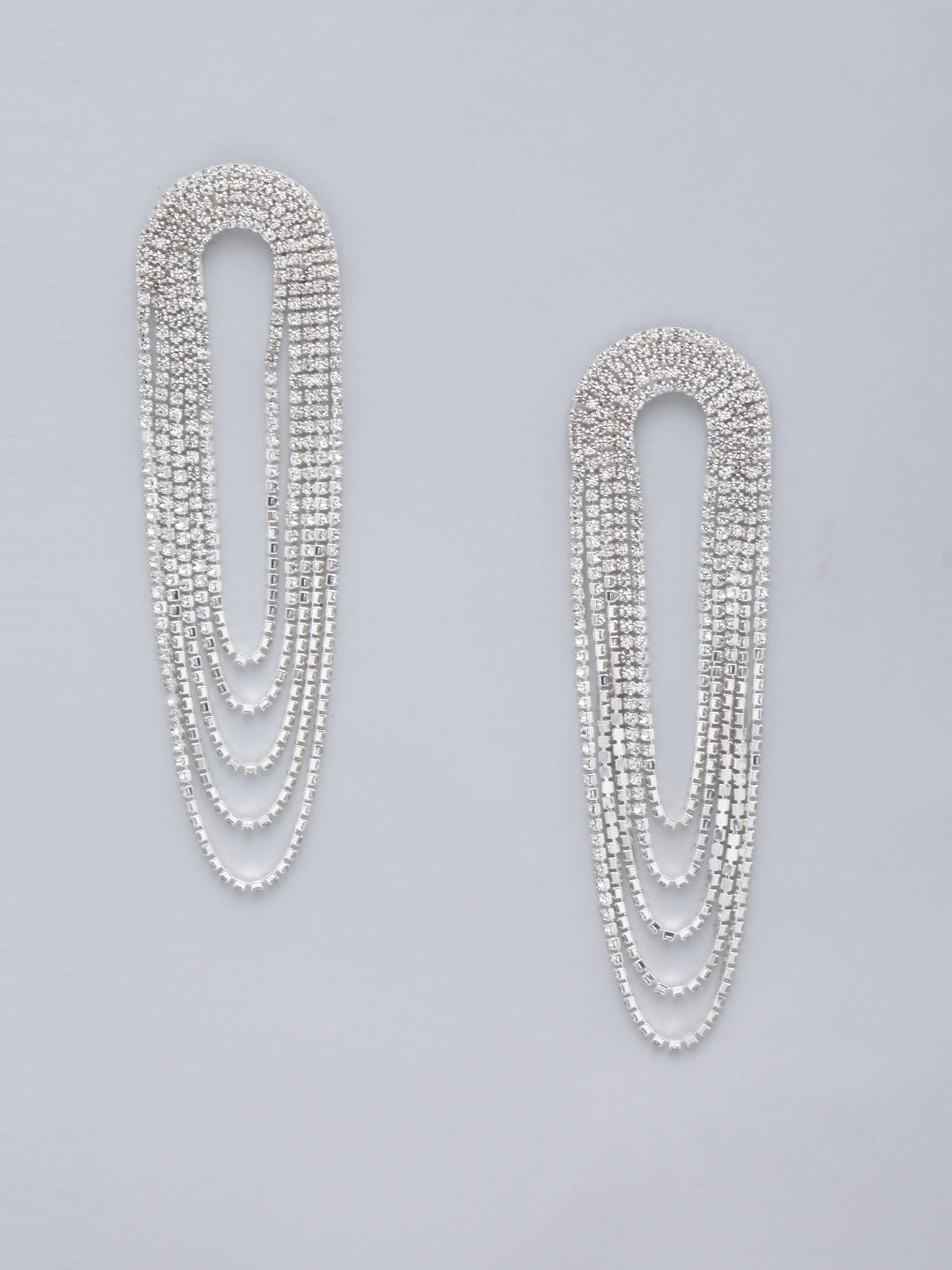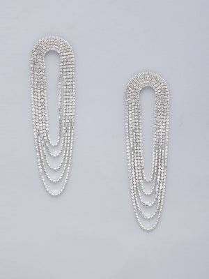 Silver-Plated Rhinestone Metallic Chain Drop Earrings
