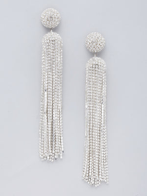 Introducing our exquisite Silver-Plated Rhinestone Metallic Chain Tassels, a perfect blend of elegance and sophistication. Crafted with precision, these earrings feature a stunning silver-plated finish that adds a touch of glamour to any outfit.