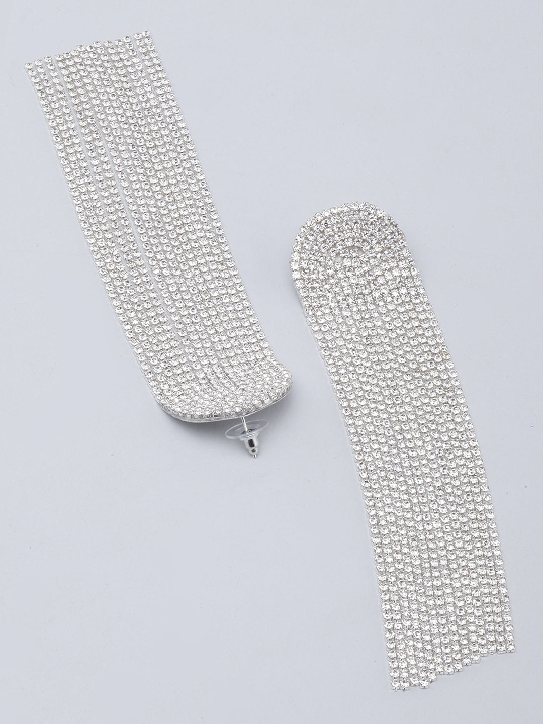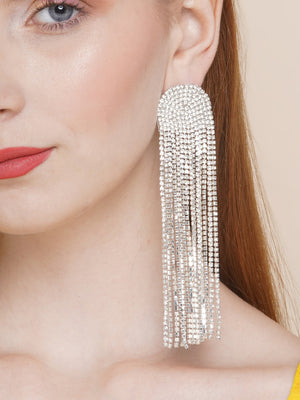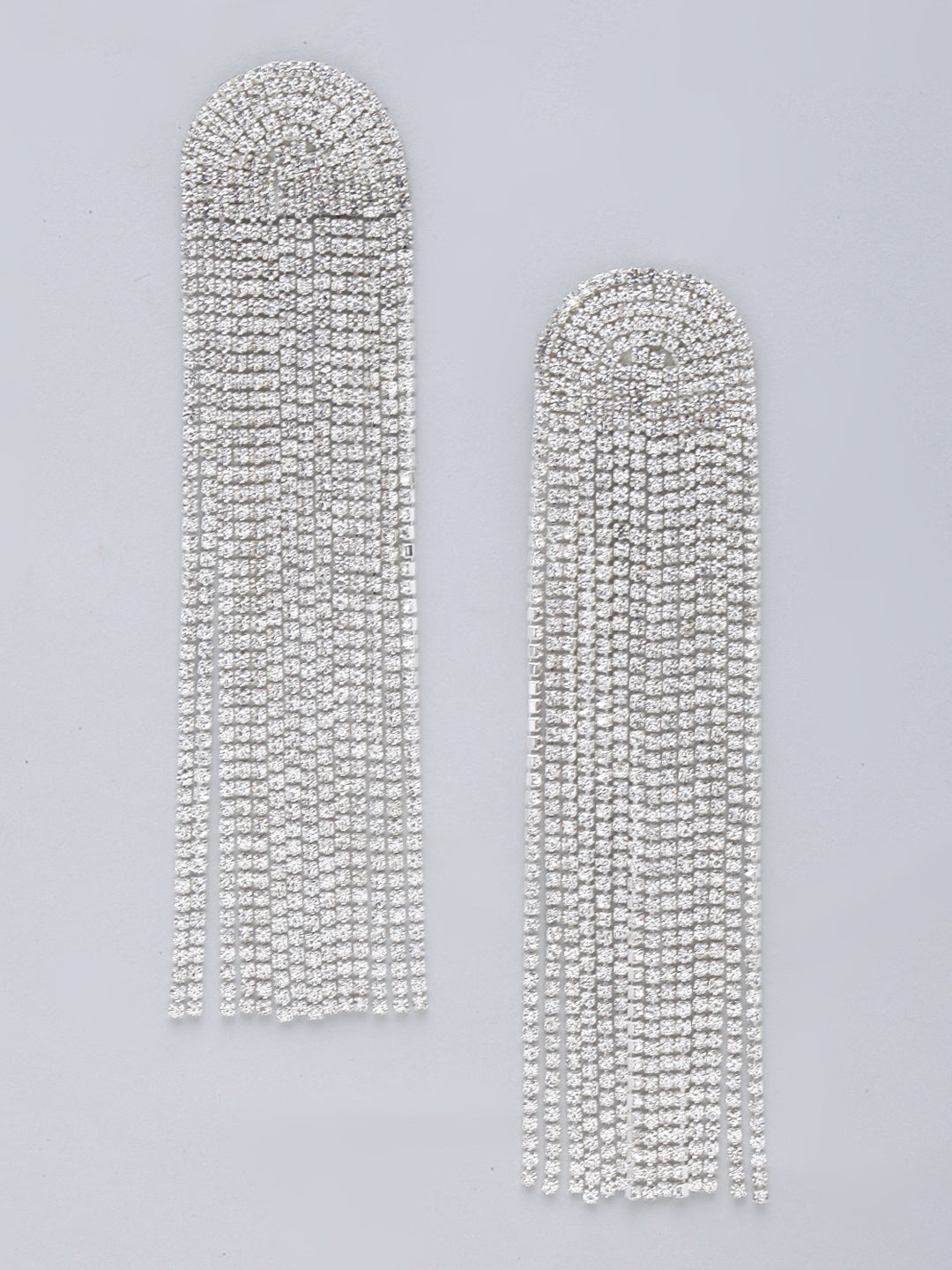Silver-Plated Rhinestone Metallic Chain Tassels