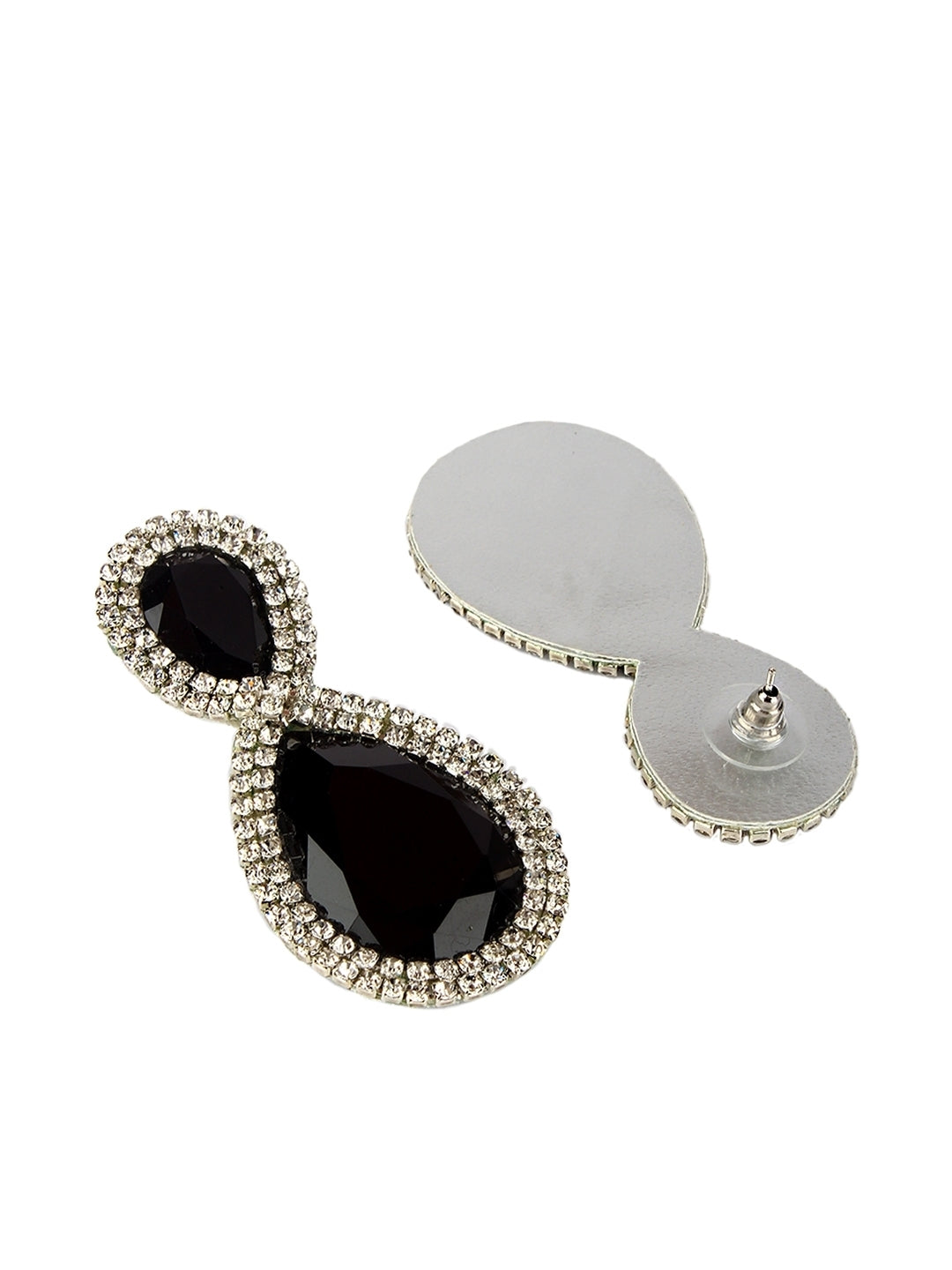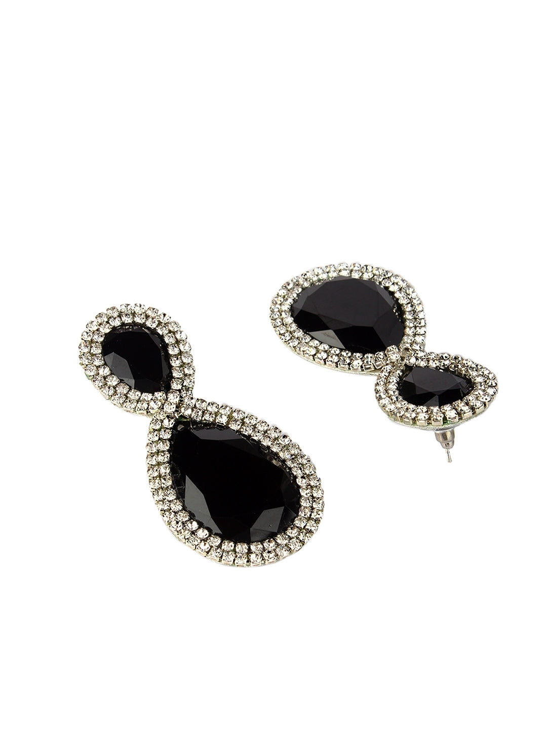 Silver-Plated Silver & Black Rhinestone Studded Contemporary Brass Studs