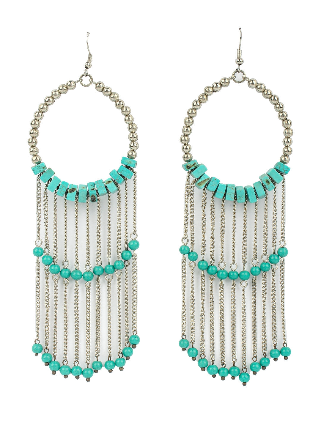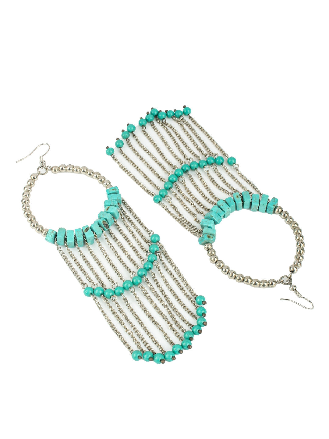 Silver-Plated Silver & Blue Brass Handcrafted Contemporary Drop Earrings