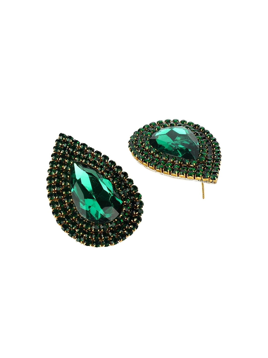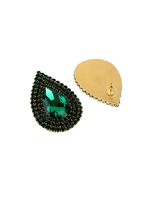 Silver-Plated Silver & Green Rhinestone Studded Contemporary Brass Studs