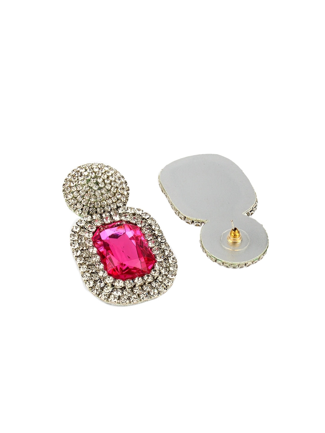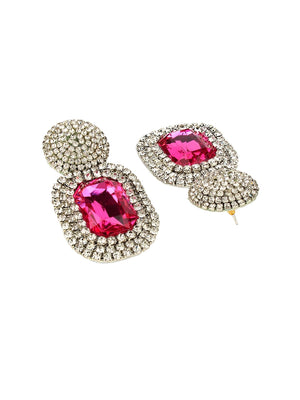 Silver-Plated Silver & Pink Rhinestone Studded Contemporary Brass Studs