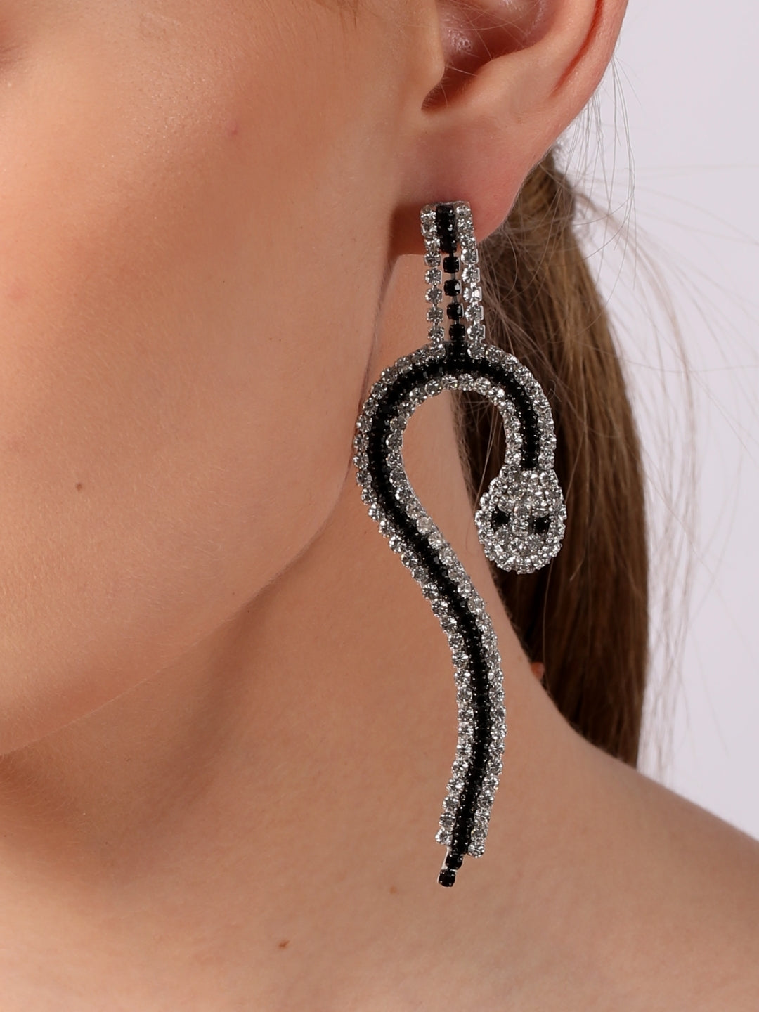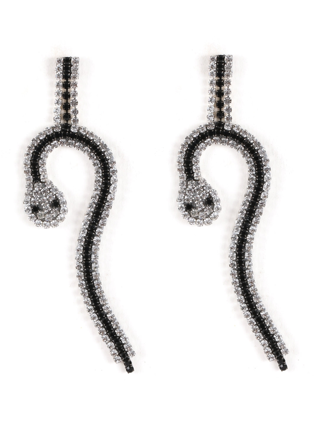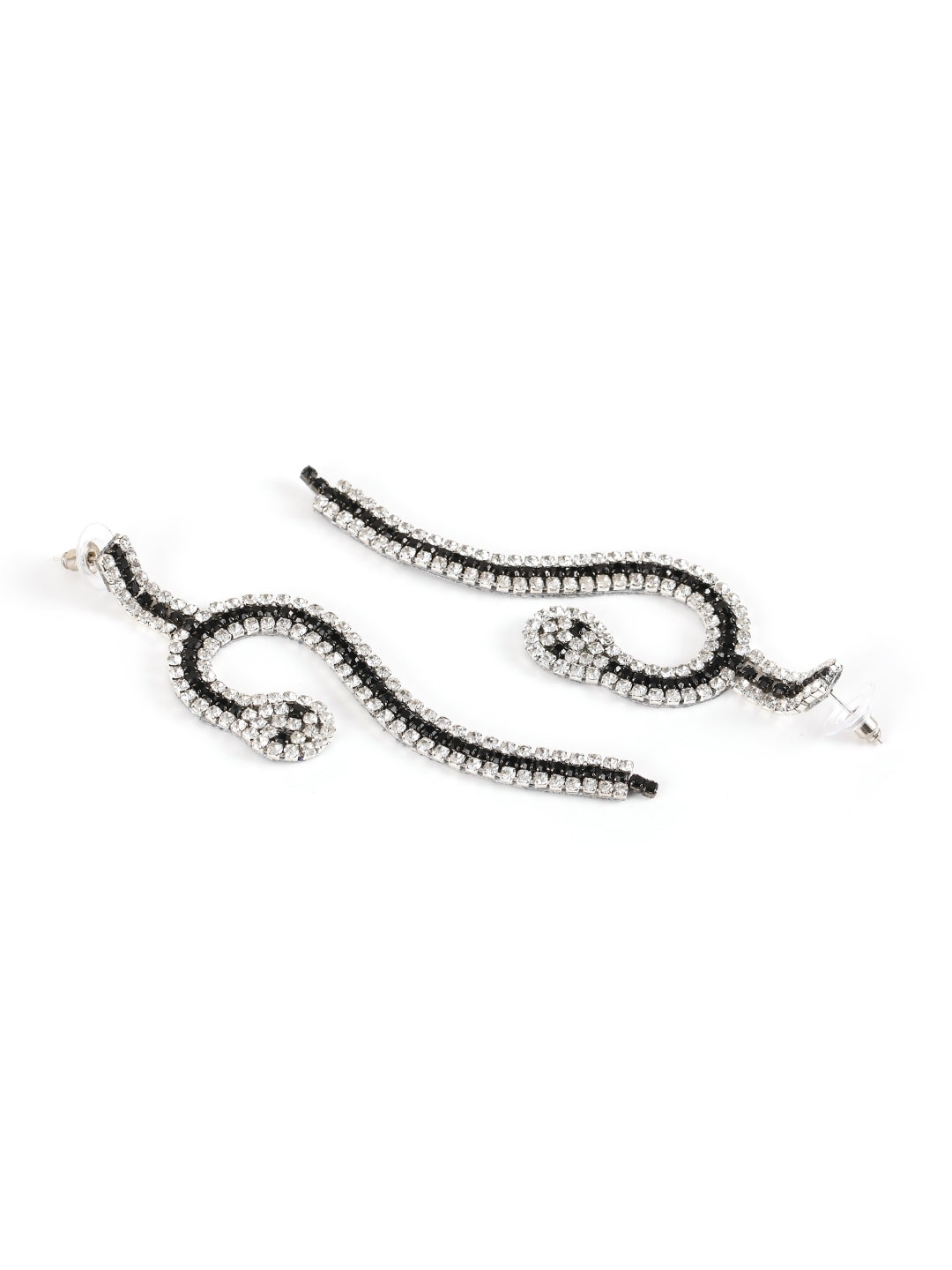 Silver-Plated Silver Rhinestone Studded Brass Handcrafted Drop Earrings