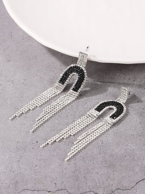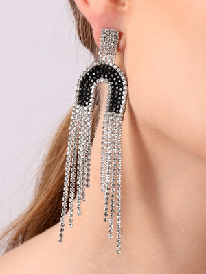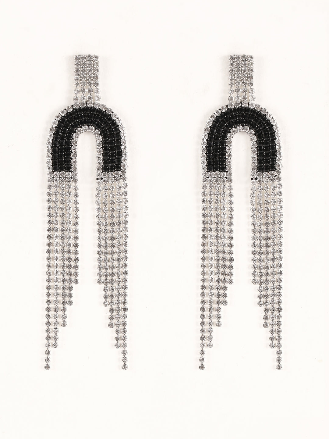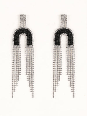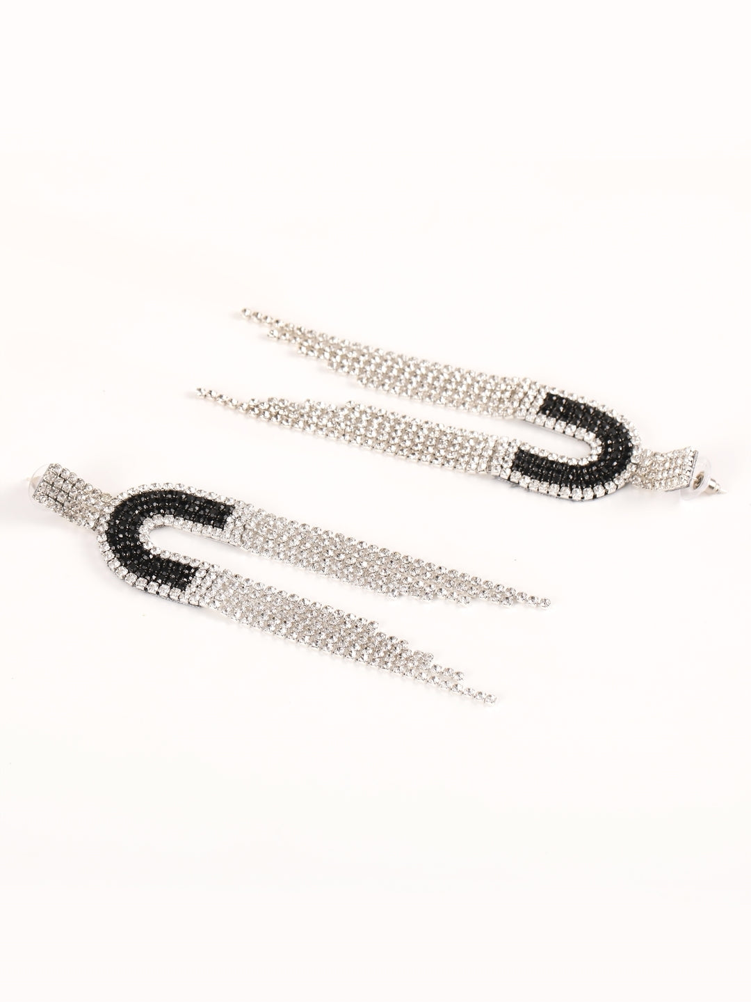 Silver-Plated Silver Rhinestone Studded Brass Handcrafted Drop Earrings