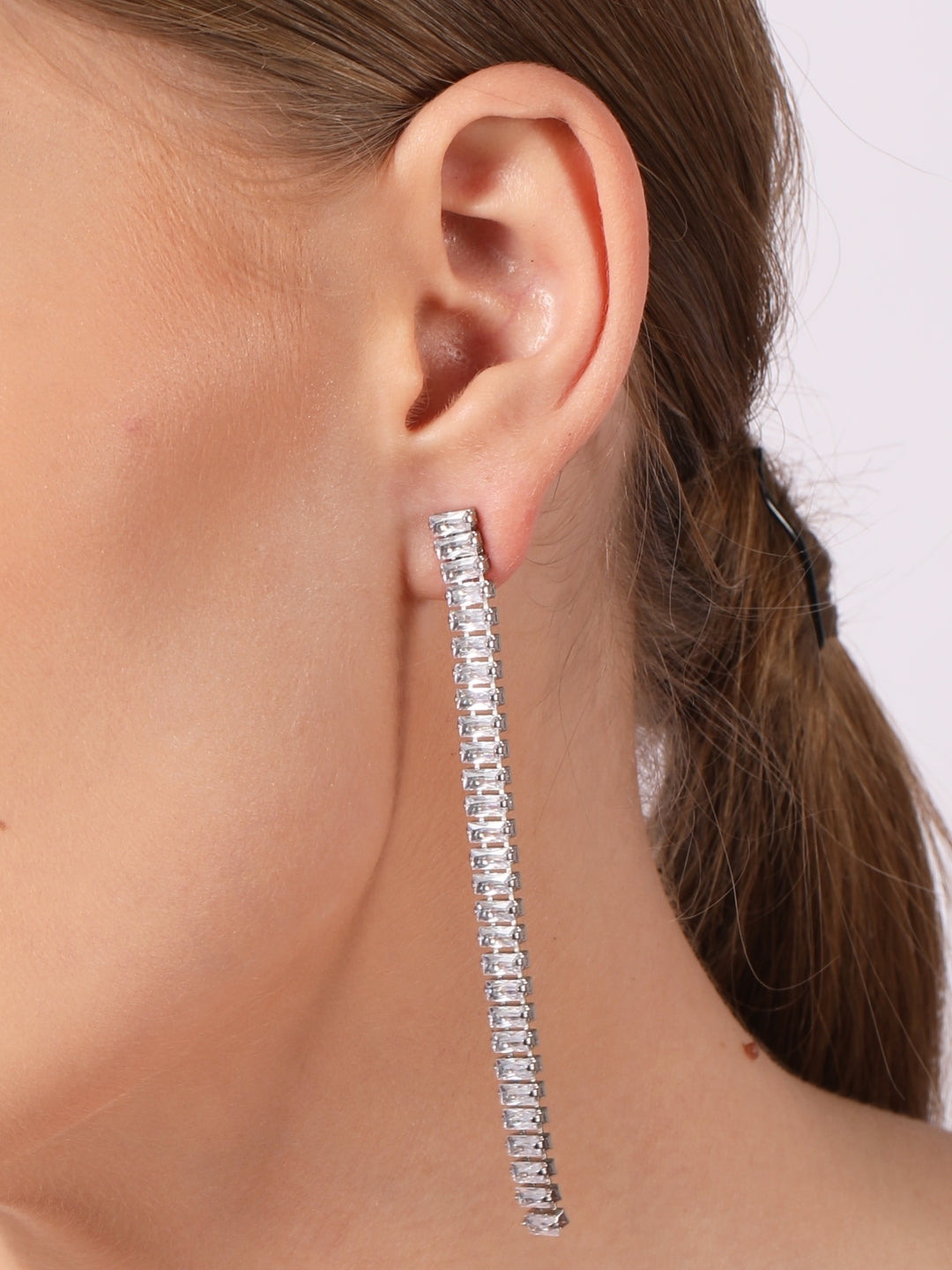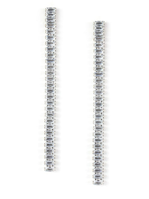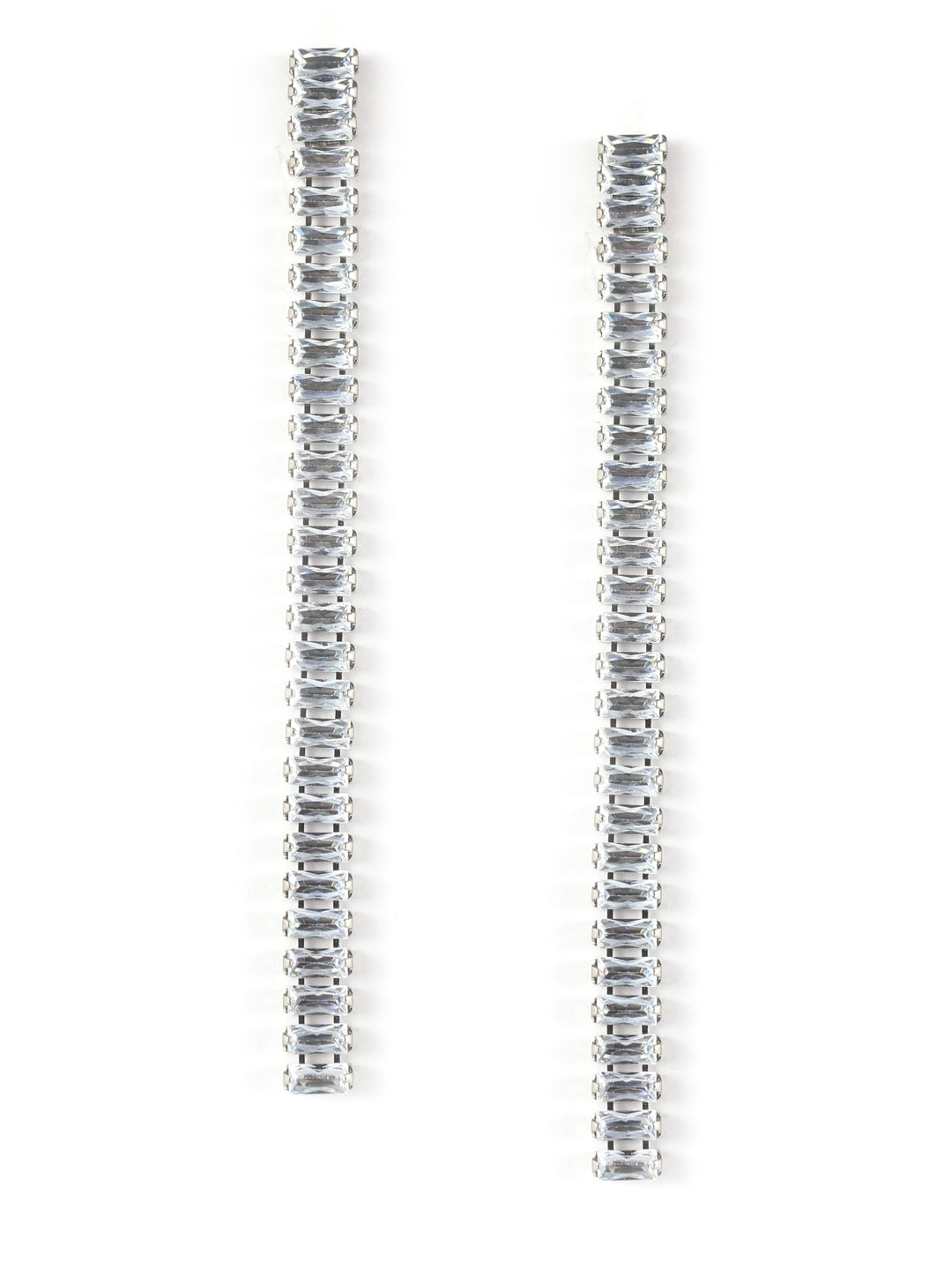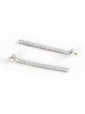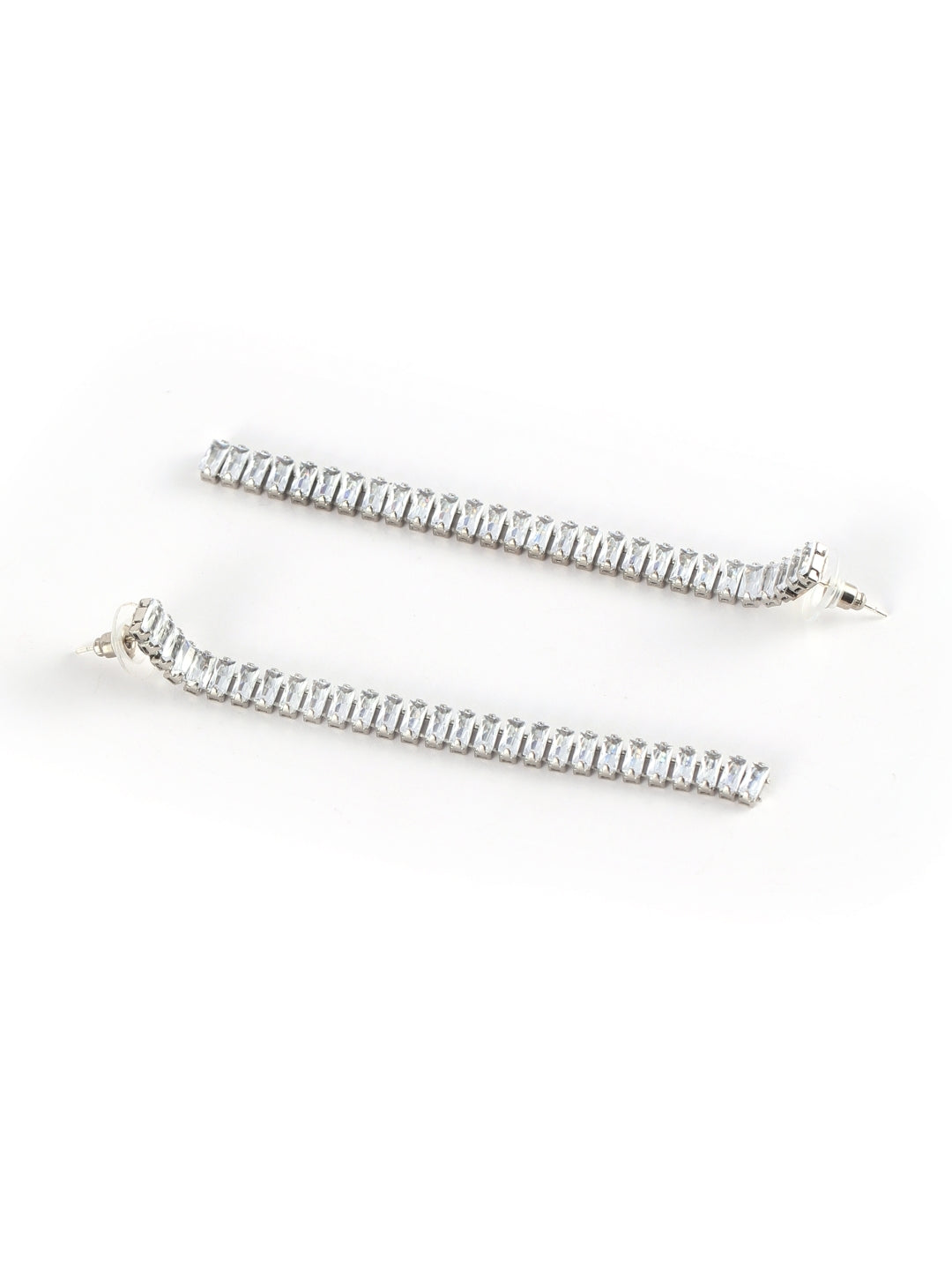 Silver-Plated Silver Rhinestone Studded Brass Handcrafted Drop Earrings