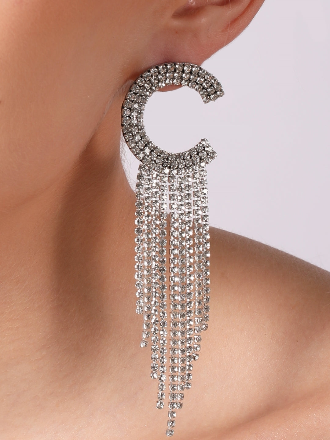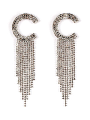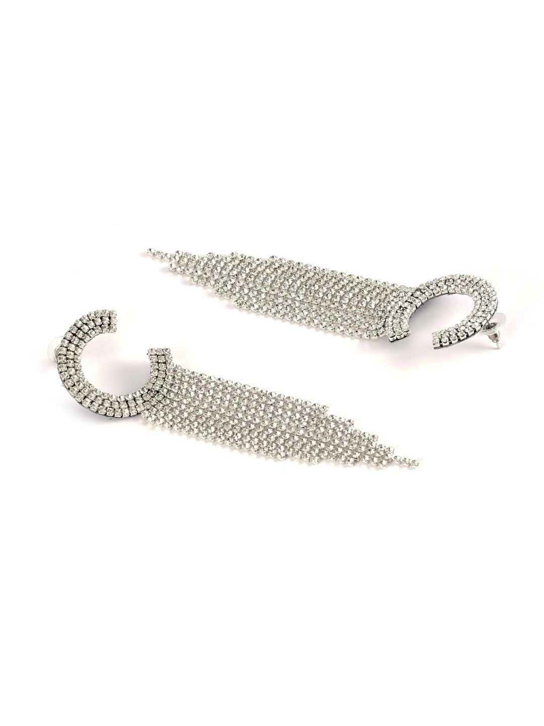 Silver-Plated Silver Rhinestone Studded Brass Handcrafted Drop Earrings