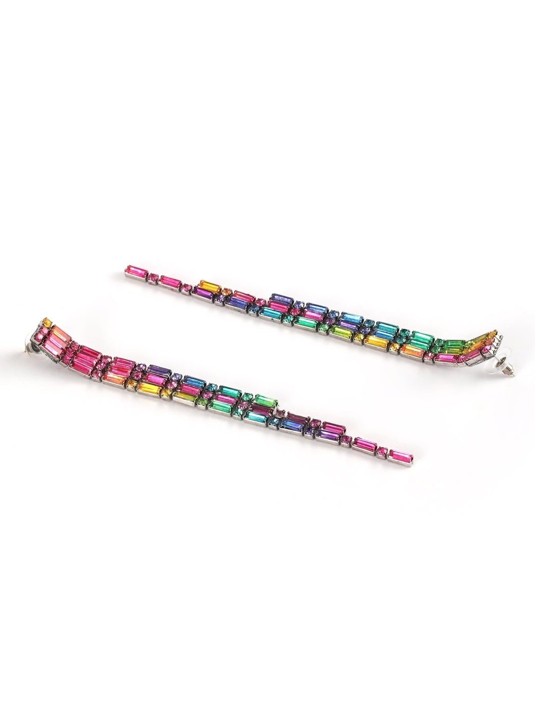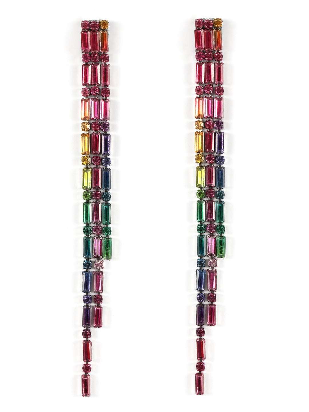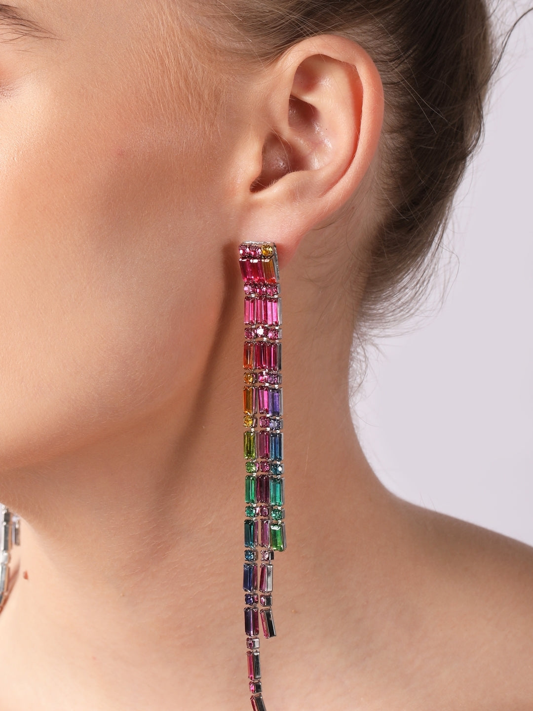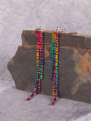Silver-Plated Silver Rhinestone Studded Brass Handcrafted Drop Earrings
