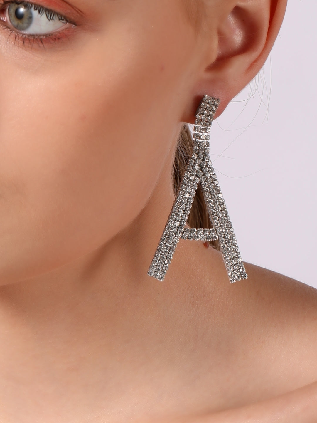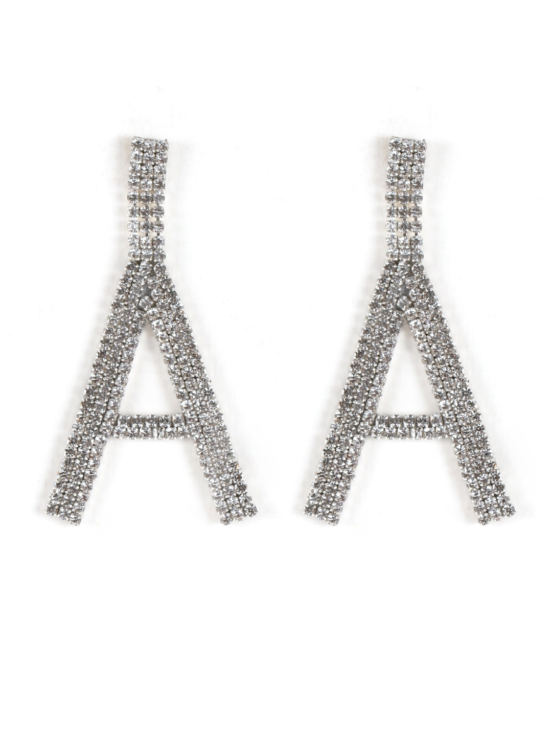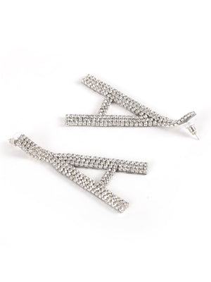 Silver-Plated Silver Rhinestone Studded Brass Handcrafted Drop Earrings