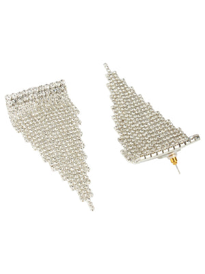 Silver-Plated Silver & Transparent Fabric Handcrafted Contemporary Drop Earrings