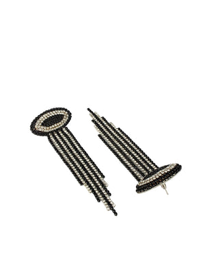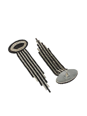 Silver-Plated Silver & Transparent Rhinestone Studded Contemporary Brass Drop Earrings