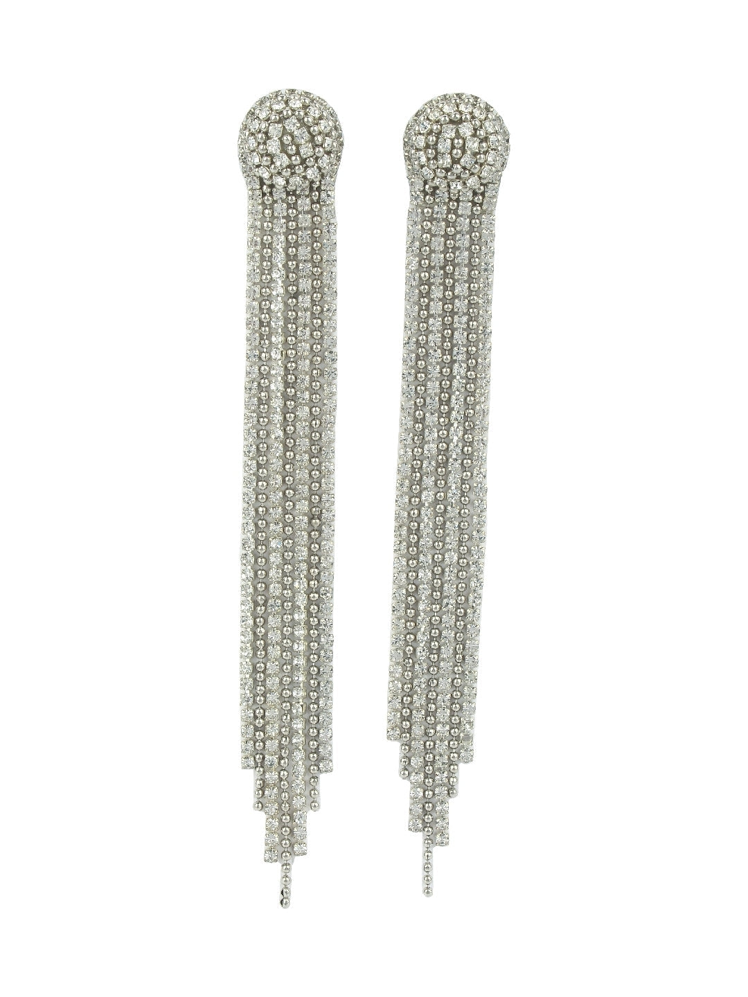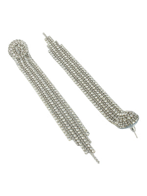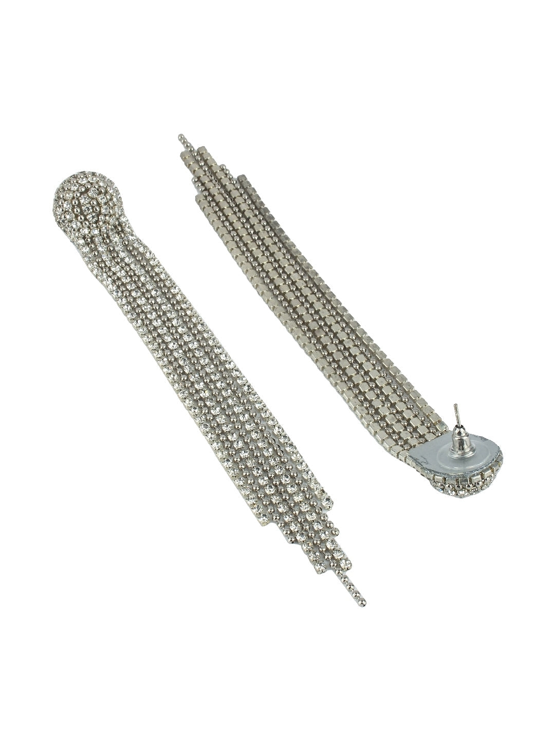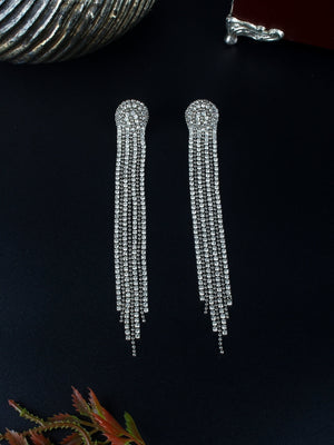 Silver-Plated Silver & Transparent Rhinestone Studded Contemporary Brass Drop Earrings
