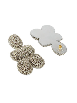 Silver-Plated Silver & Transparent Rhinestone Studded Contemporary Brass Studs