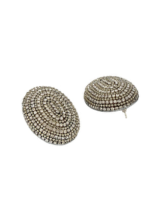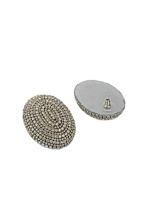 Silver-Plated Silver & Transparent Rhinestone Studded Contemporary Brass Studs