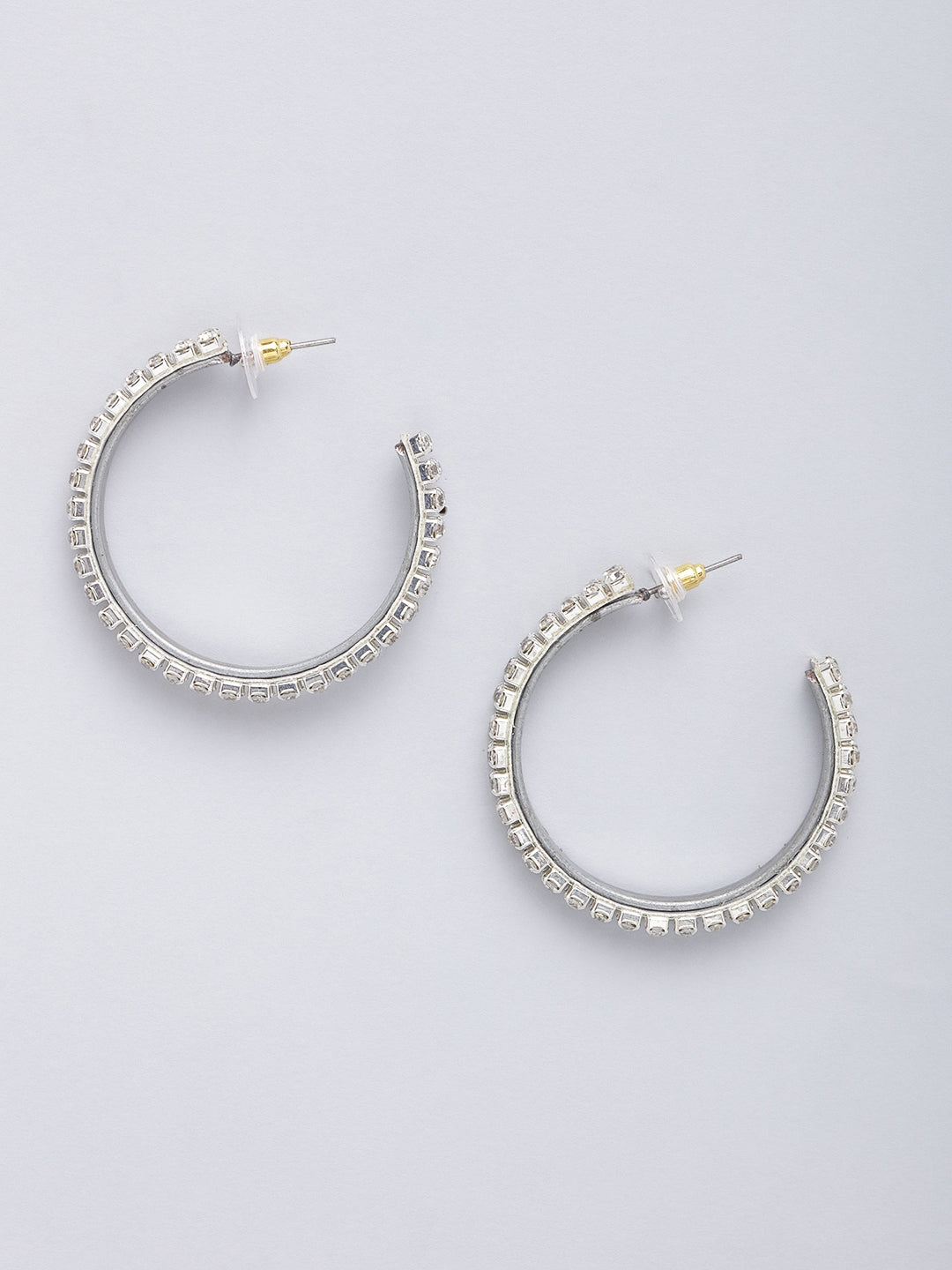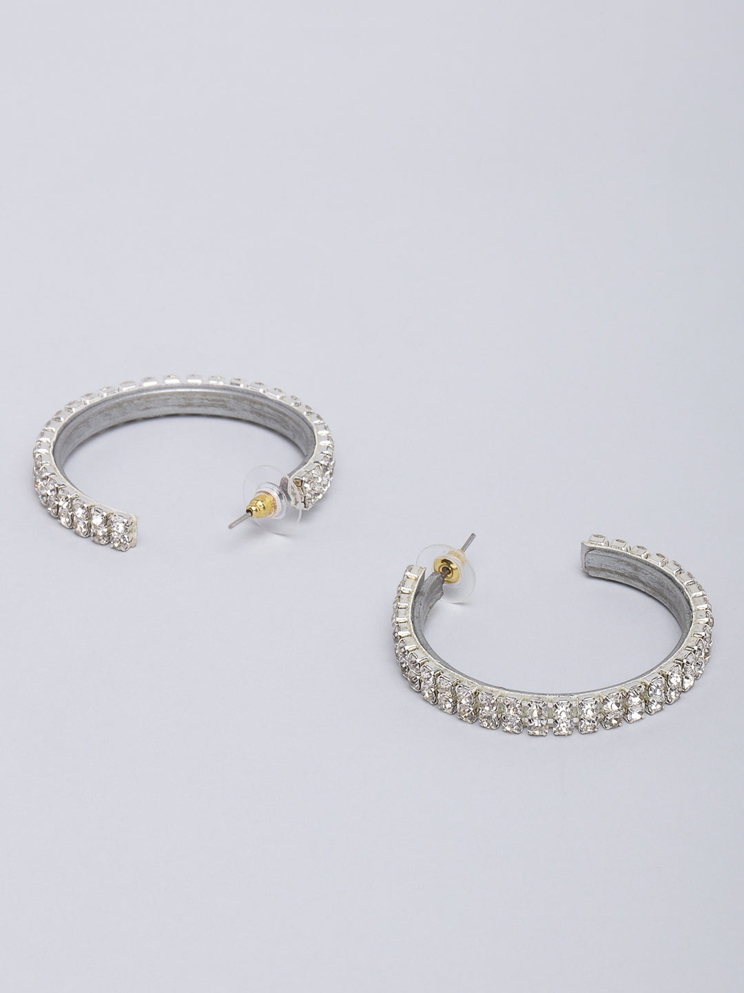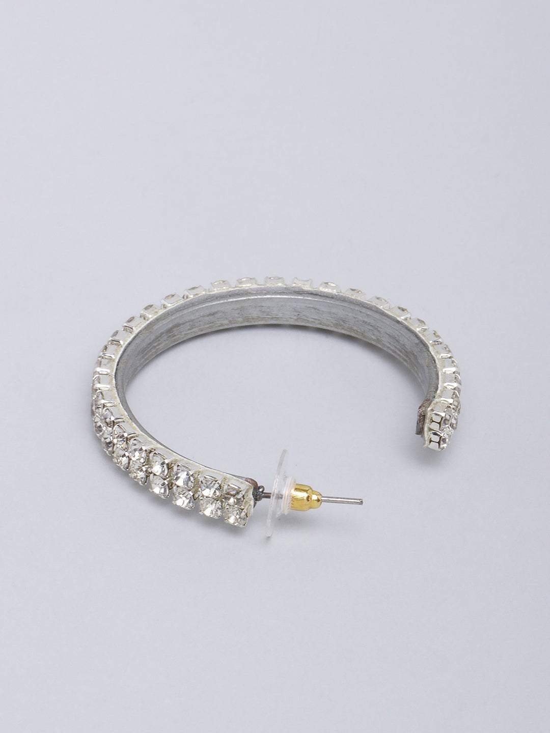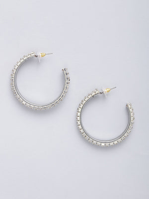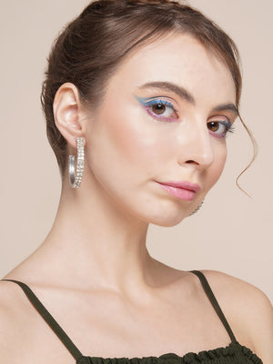 Silver-Plated Silver & Transparent Stone Studded Half Hoop Earrings