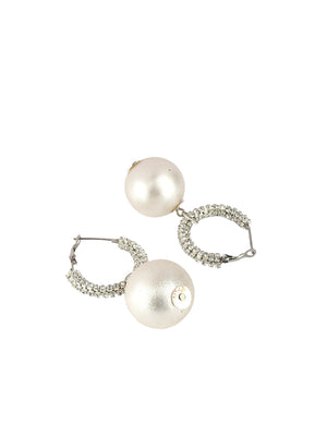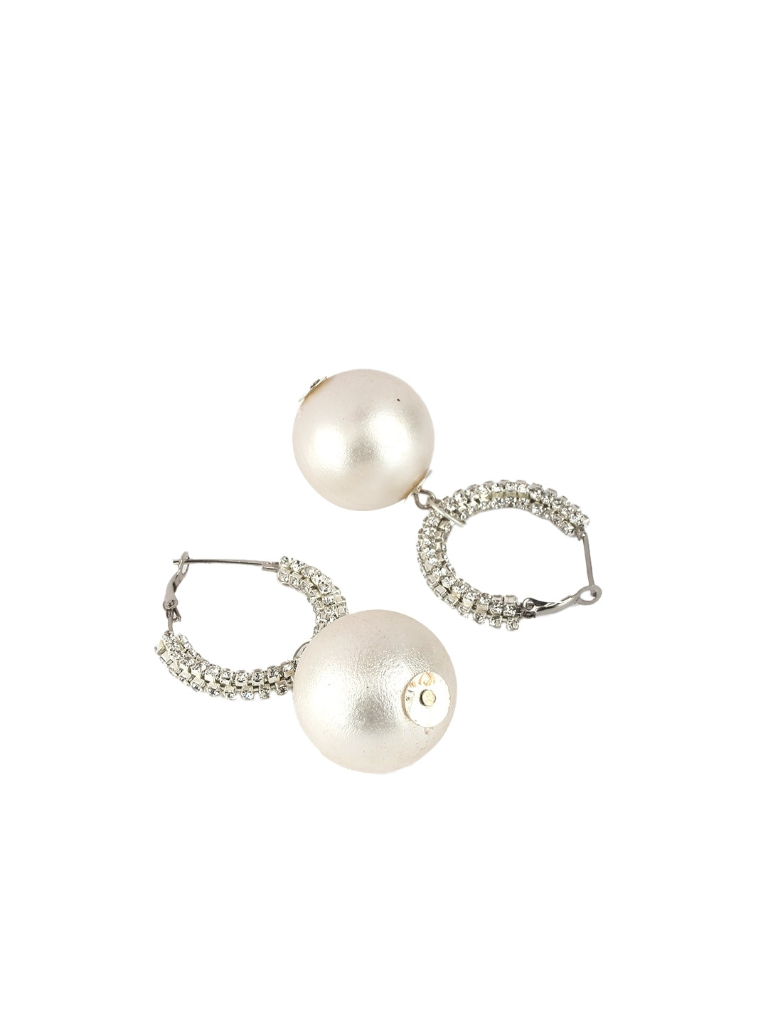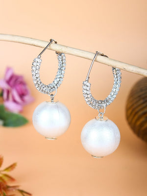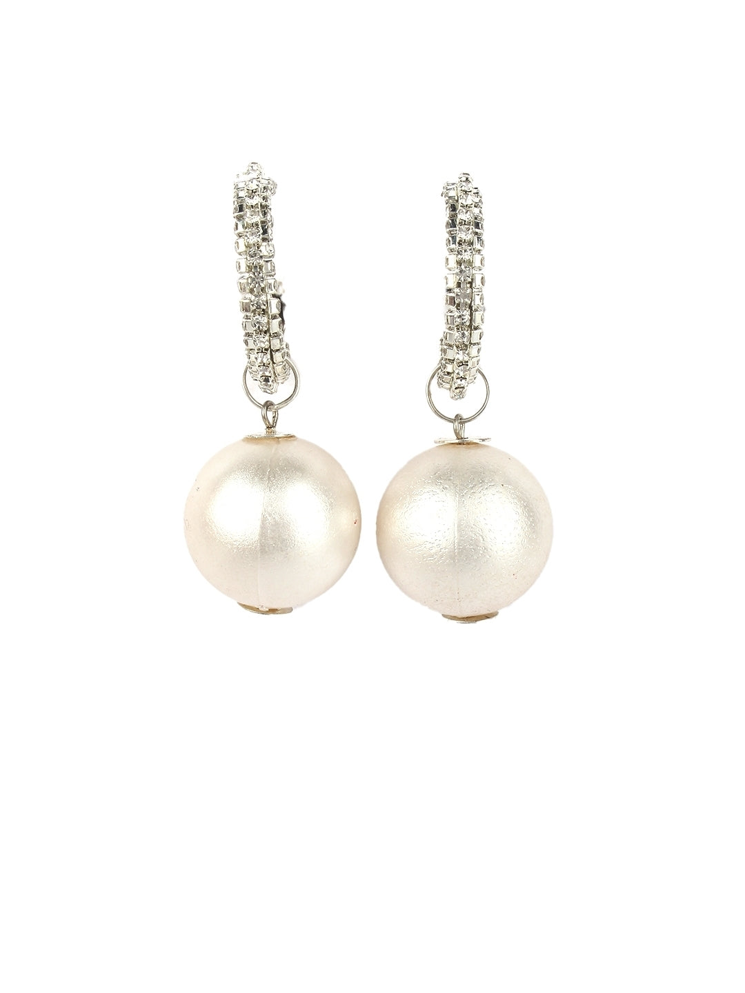 Silver-Plated Silver & White Rhinestone Studded Contemporary Brass Drop Earrings