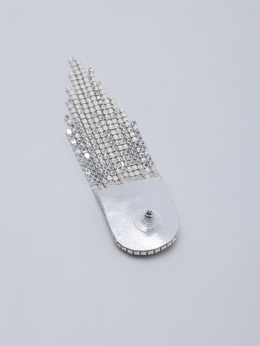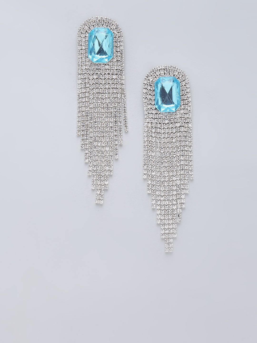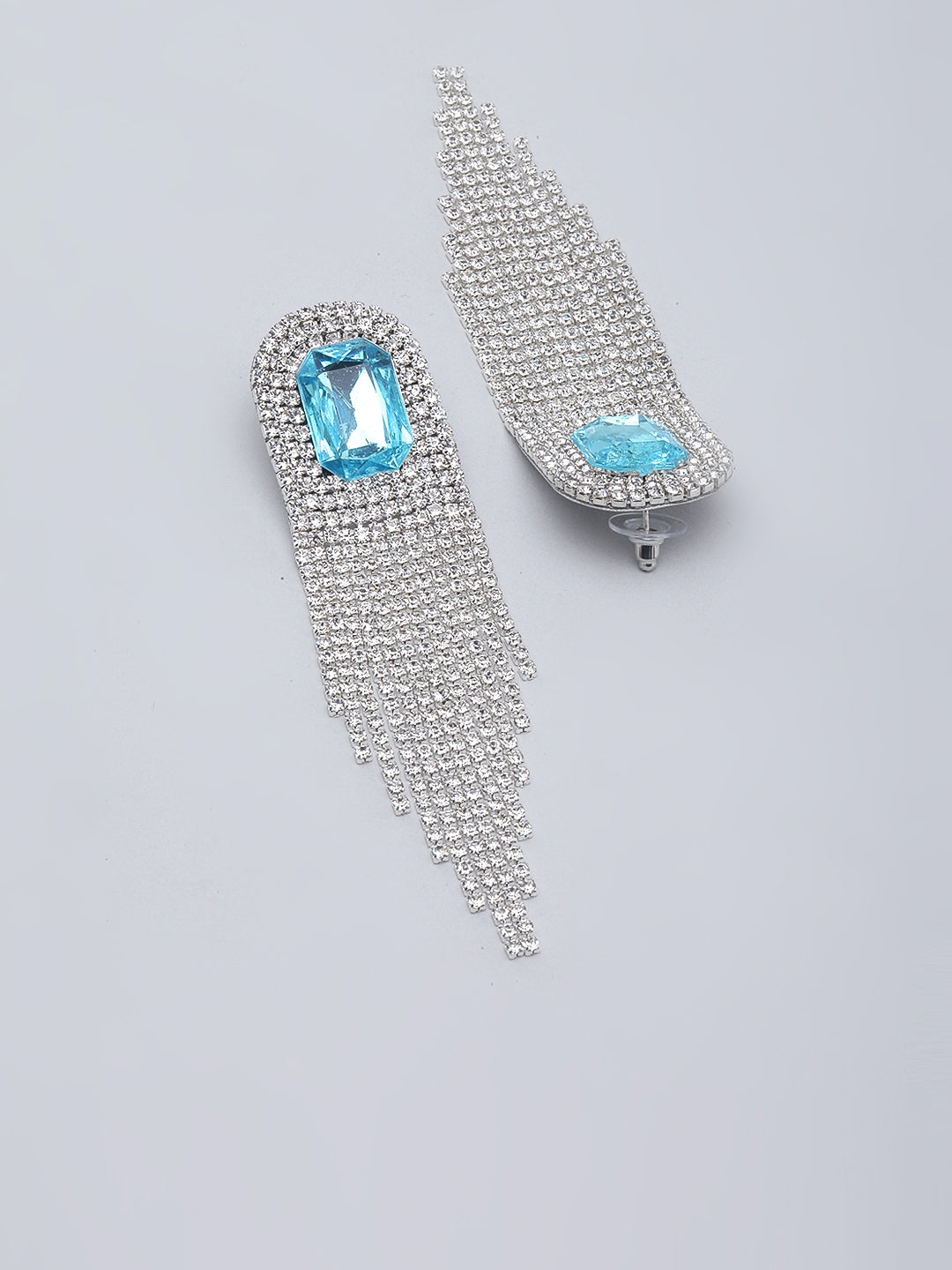 Silver-Plated Transparent Blue Rhinestone Studded Drop Earrings