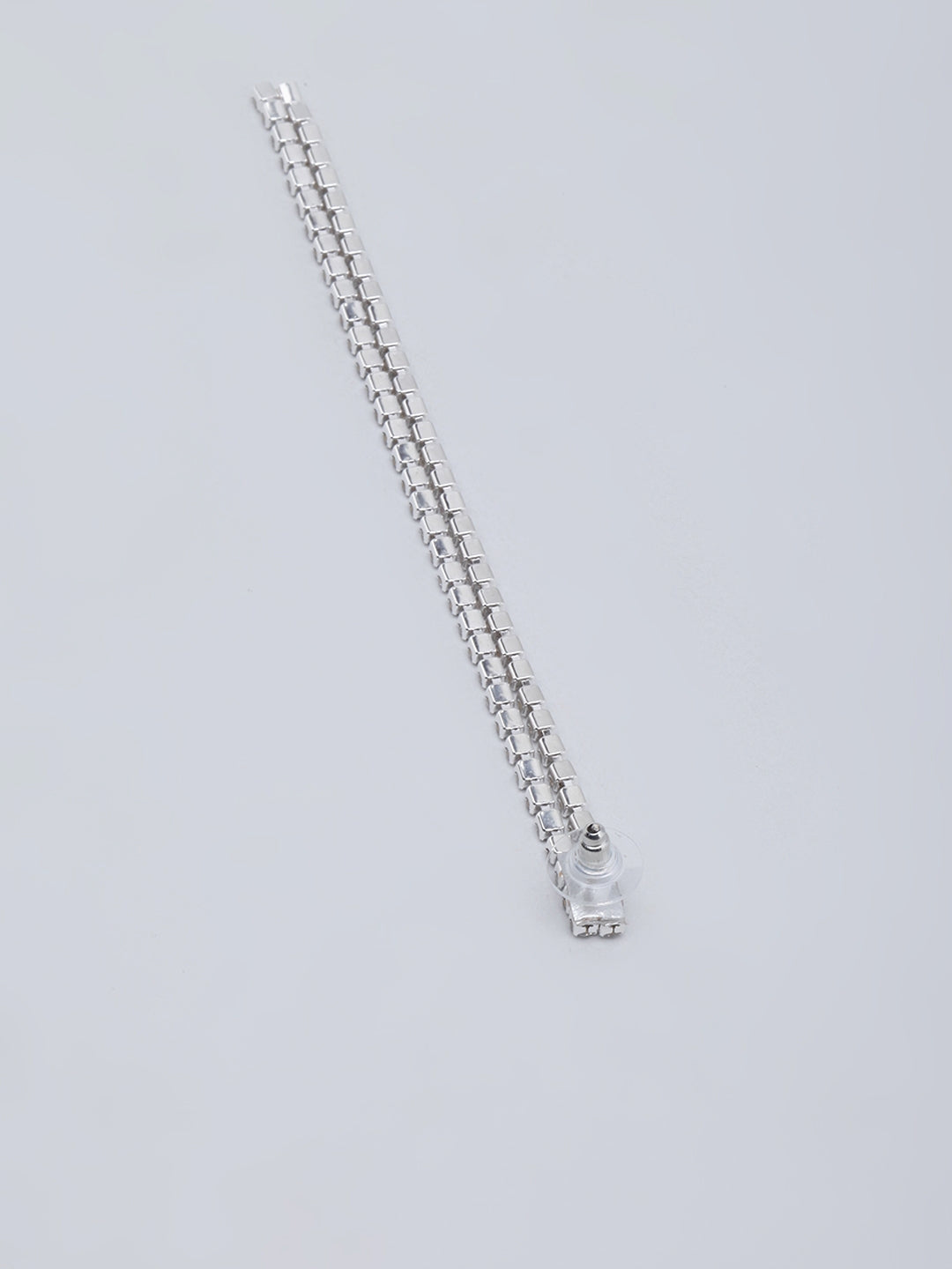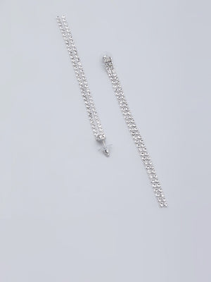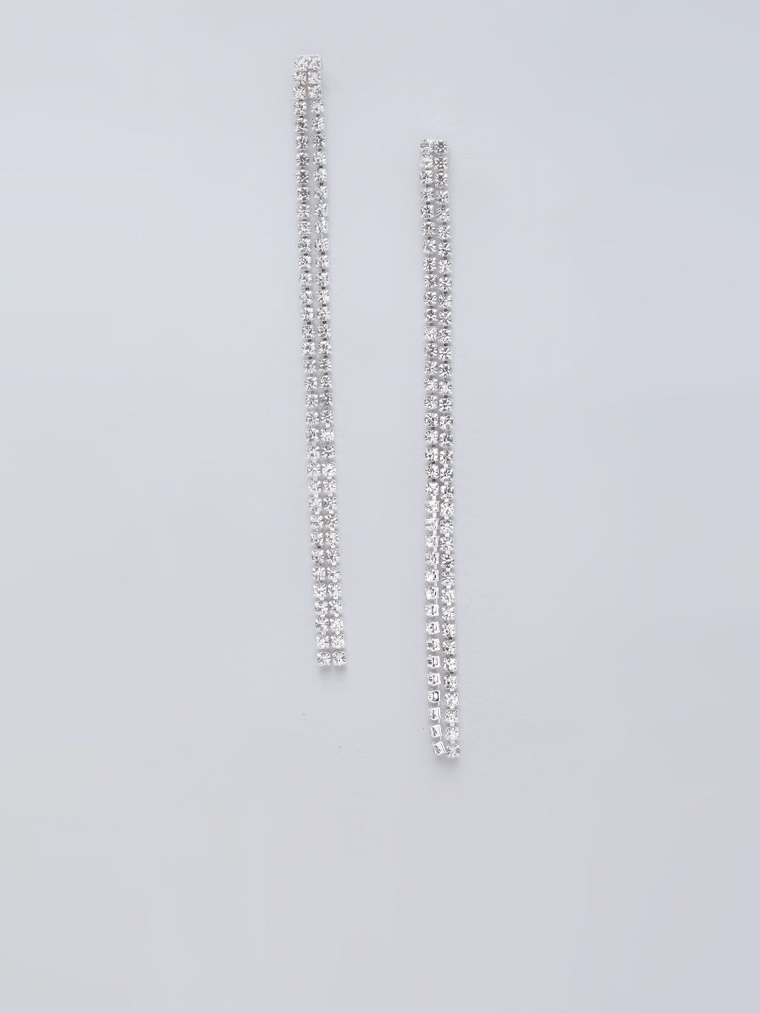Silver-Plated Transparent Rhinestone Studded Drop Earrings