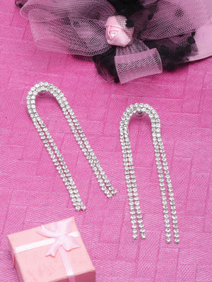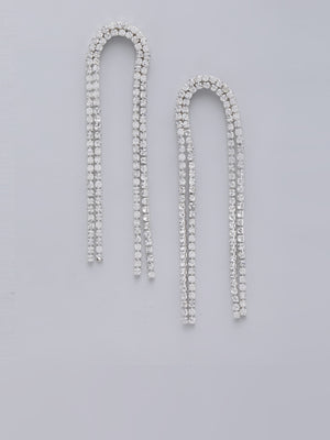Silver-Plated Transparent Rhinestone Studded Drop Earrings