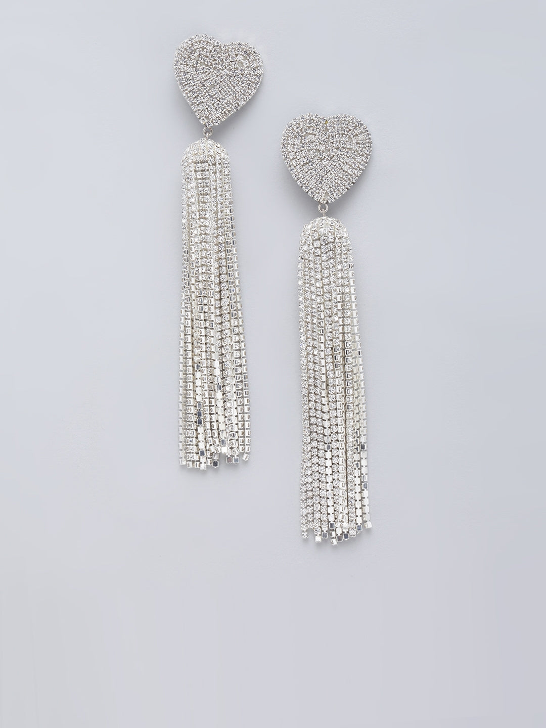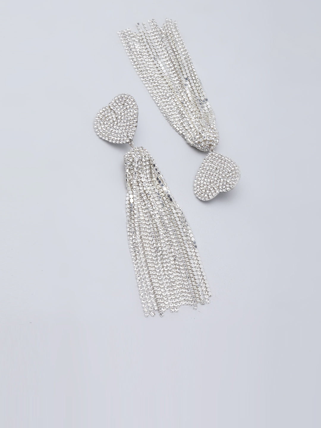 Silver-Plated Transparent Rhinestone Studded Heart Shaped Metallic Tassels