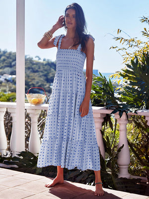 Embrace your feminine side and turn heads with our sky blue square neck a-line floral sleeveless maxi polyester dress. Crafted from high-quality polyester, this dress offers a comfortable and lightweight feel, perfect for any occasion.