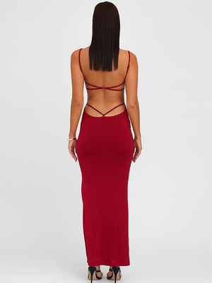 Square Neck Sleeveless Maxi Dress - Red