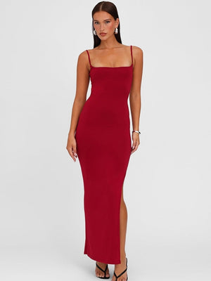 Make a bold statement in our Square Neck Sleeveless Maxi Dress in Red. Designed with a sleek, curve-contouring silhouette and a minimalist square neckline, this dress exudes elegance and confidence. The side slit adds a touch of allure, making it perfect for dinner dates, parties, or any special evening occasion.