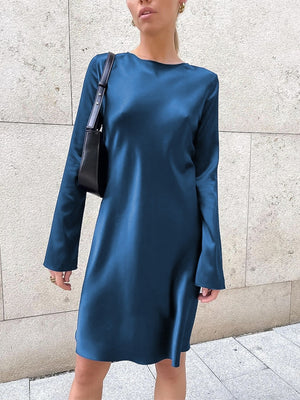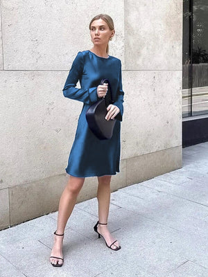 Teal Satin Long Sleeve Shift Dress