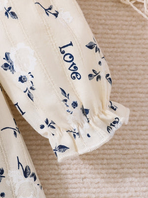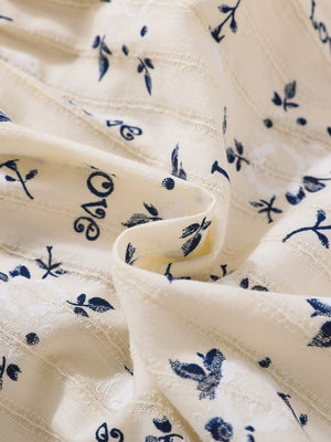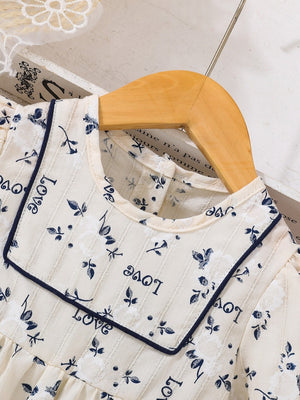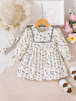White A-Line Round Neck Abstract Long Sleeves Cotton Dress