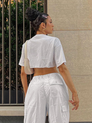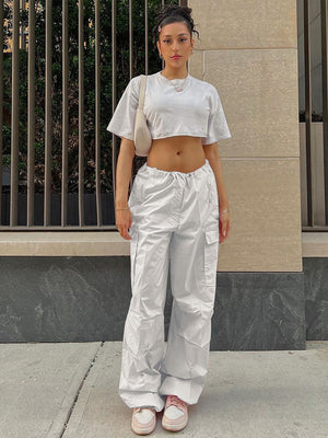 Stay comfortable and stylish in these white baggy trousers, ideal for casual outings with their relaxed fit.