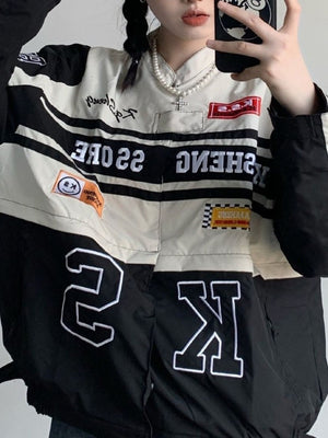 White Collarless Long Sleeves Typography Polyester Open Front Jacket