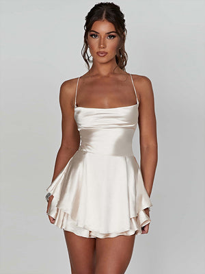 This elegant white above knee dress features a classic shoulder straps and sleeveless, making it a versatile and timeless addition to any wardrobe.