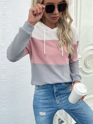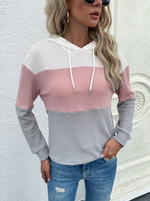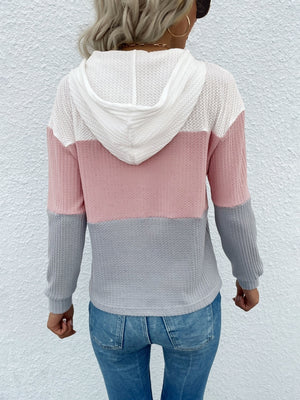 White Hood Neck Colourblocked Long Sleeves Cotton Sweater