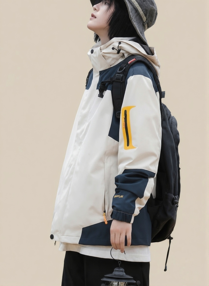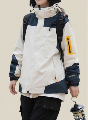 White Mock Collar Long Sleeves Colourblocked Polyester Open Front Jacket