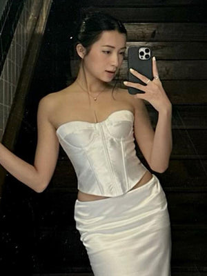White Off-Shoulder Sleeveless Polyester Tube Top