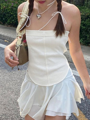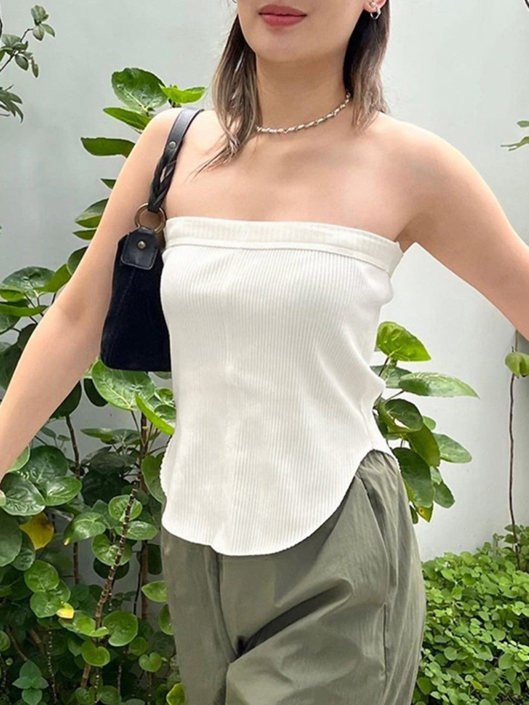 White Off-Shoulder Solid Sleeveless Polyester Casual Top