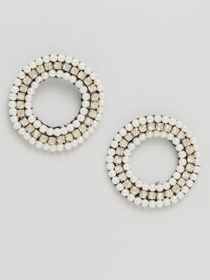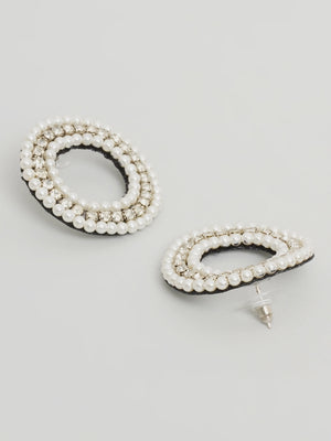 Silver-Plated CZ-Studded & Pearls Circular Drop Earrings