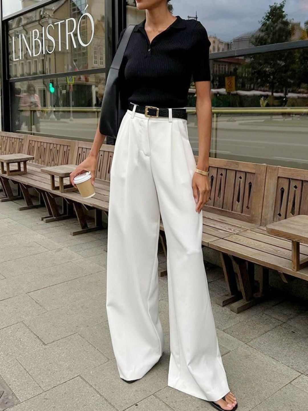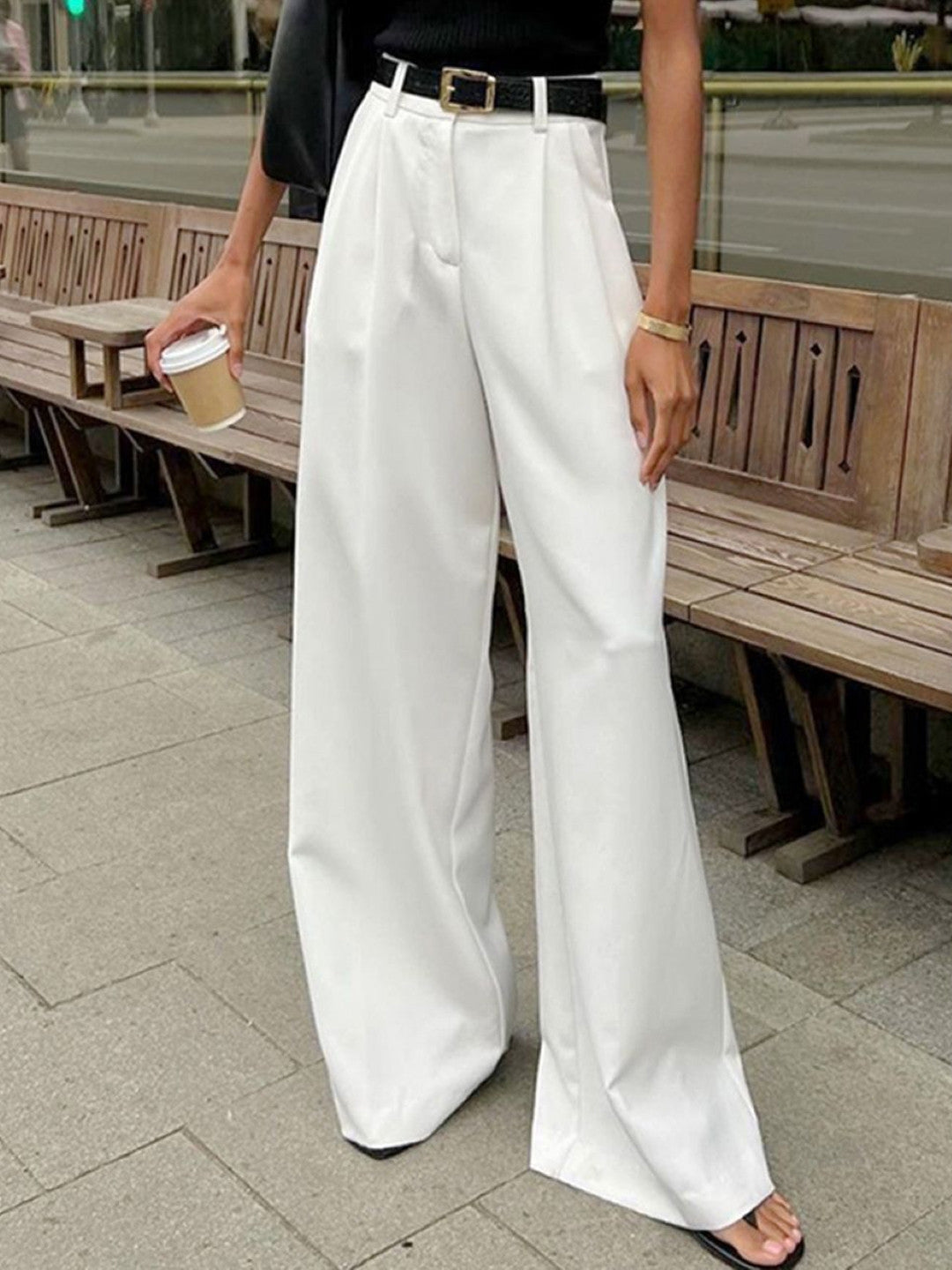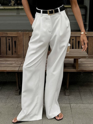 White Relaxed Fit Solid Polyester Trouser