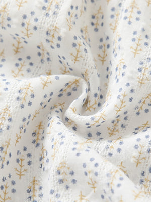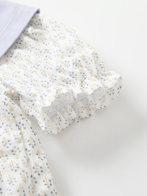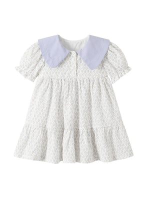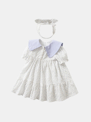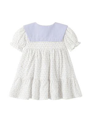 White Round Neck Casual A-Line Floral Short Sleeves Knee Length Cotton Dress