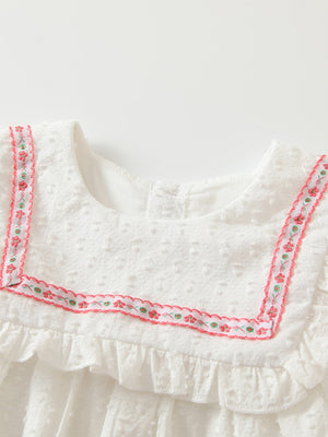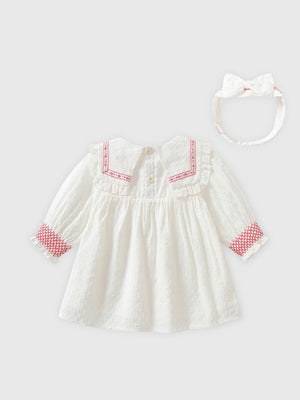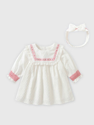 White Round Neck Casual A-Line Solid Long Sleeves Knee Length Cotton Dress