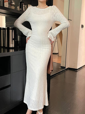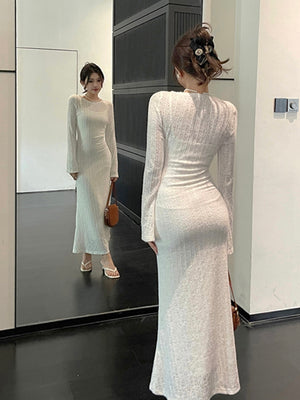 Whether you're going to a party, a casual outing, or a special event, this White Round Neck Long Sleeves Clothing Set is a must-have addition to your wardrobe.