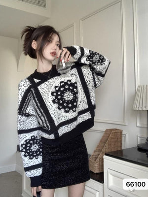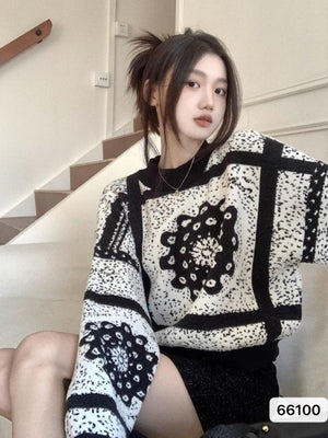 Introducing our White Round Neck Long Sleeves Geometric Regular Sleeves Viscose Rayon Top, a stylish and versatile addition to your wardrobe. Made from high-quality viscose rayon fabric, this top offers a comfortable and breathable fit. The round neck design adds a touch of elegance, while the black color provides a timeless and sophisticated look.