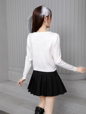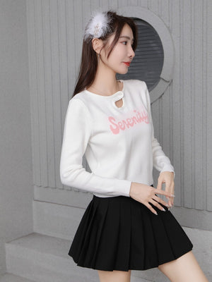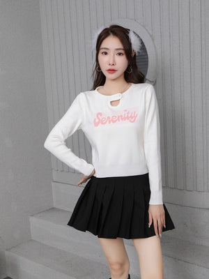 White Round Neck Long Sleeves Typography Top