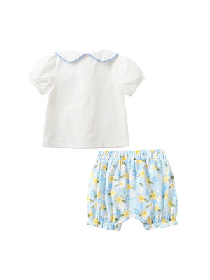 White Round Neck Short Sleeves Printed Top & Shorts Pure Cotton Set