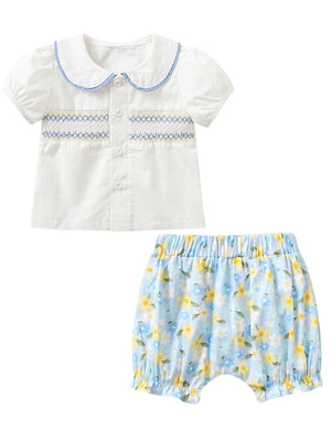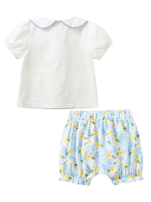 White Round Neck Short Sleeves Pure Cotton Top & Shorts Set