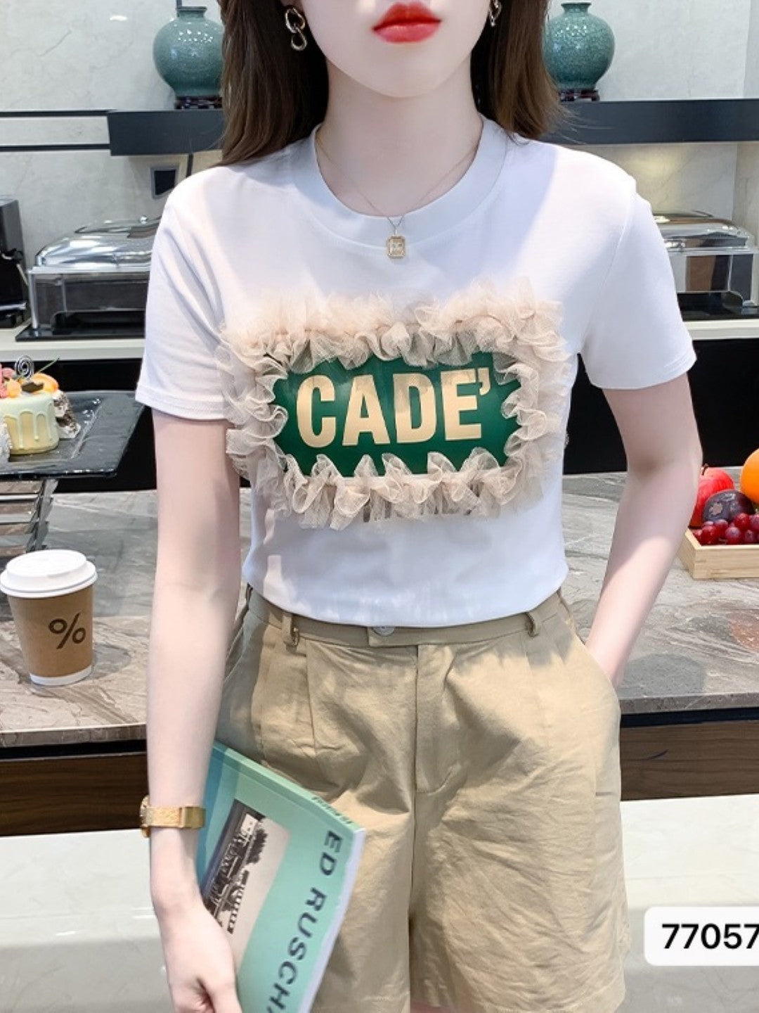 White Round Neck Short Sleeves Typography Regular Sleeves Viscose Rayon Top