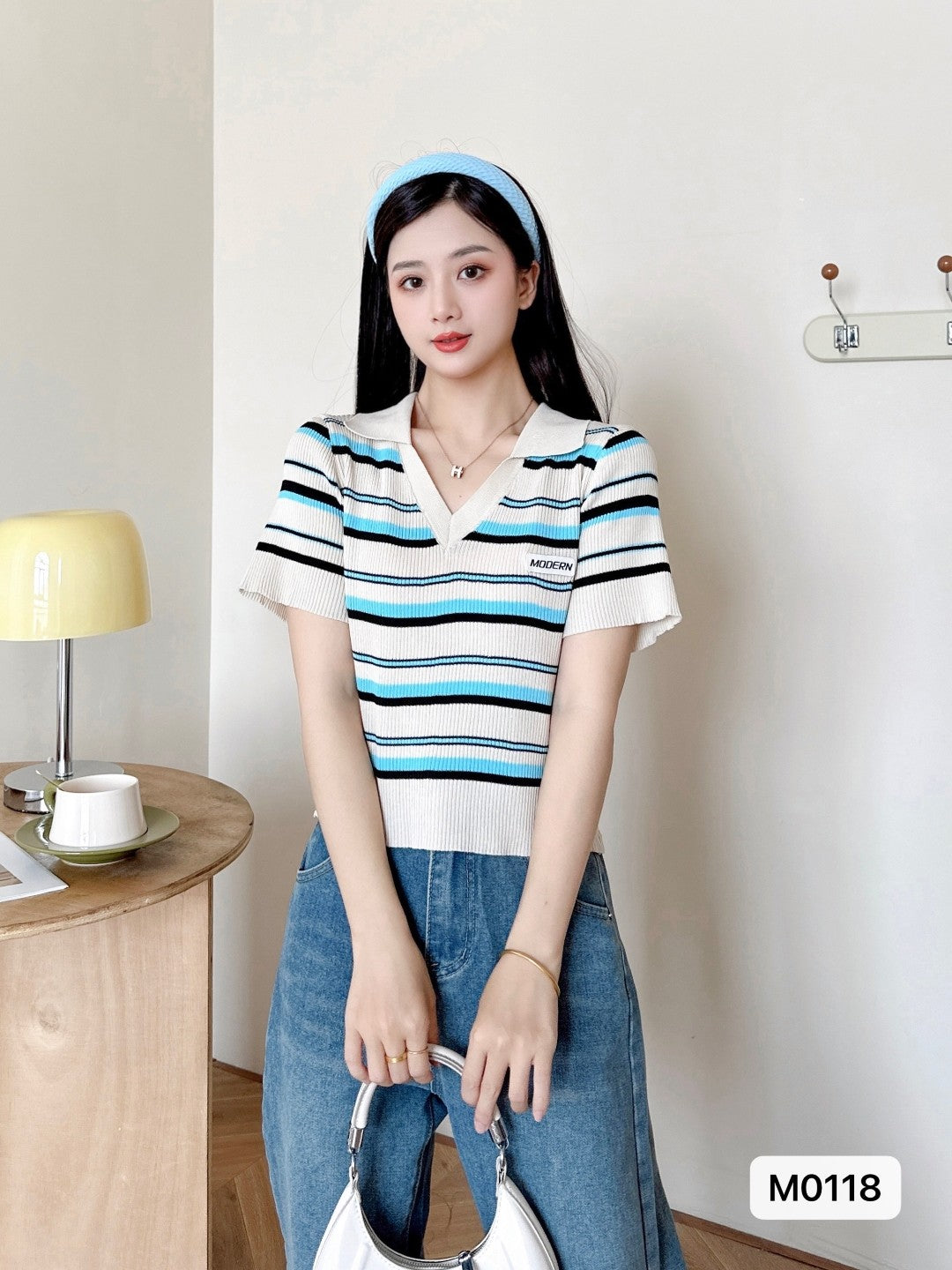 White Shirt Collar Short Sleeves Horizontal Stripes Regular Sleeves Viscose Rayon Top