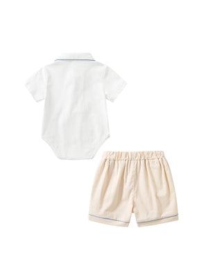 White Shirt Collar Short Sleeves Solid Top & Shorts Pure Cotton Set