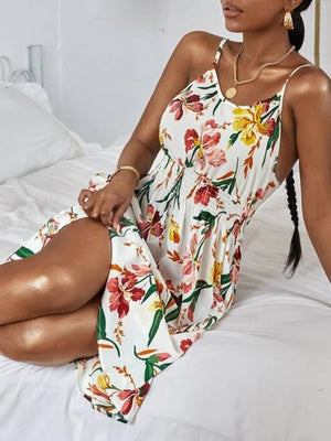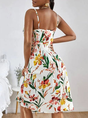 White Shoulder Straps A-Line Floral Sleeveless Knee Length Polyester Dress