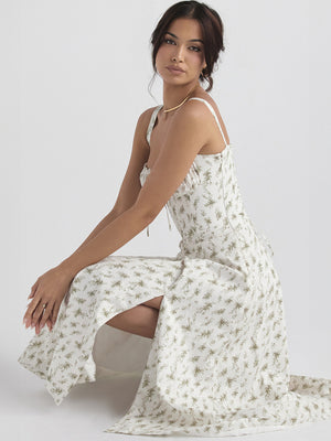 White Shoulder Straps A-Line Floral Sleeveless Maxi Polyester Dress